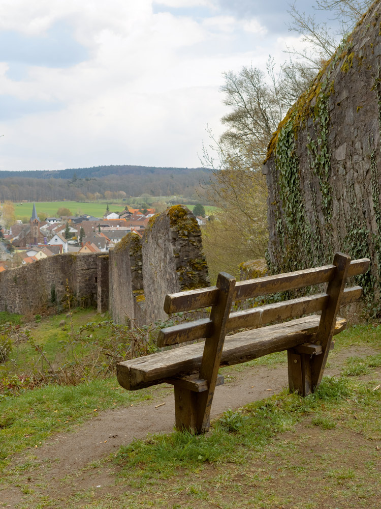 Auf den Abstecher zur Veste! Da geht es zwar ganz schön bergauf, aber ich habe ja elektrische Unterstützung. Und oben angekommen mache ich mir noch die Mühe und steige auf die Aussichtsplattform der „weißen Rübe“. Das ist ein Turm innerhalb der Festungsanlage und das älteste Gebäude dort oben. Von der Plattform aus hat man eine sagenhafte Aussicht über den ganzen Landkreis bis hinunter nach Frankfurt. Das ist zwar eher Weite als Nähe, aber worauf es ankommt, ist meine persönliche Nähe zu diesem Ort. Schon mit meinen Schulfreunden bin ich früher oft dorthin gekommen. Meine erste Zigarette zum Beispiel habe ich da oben geraucht. Und noch ein paar andere Dinge erlebt. Aber das würde jetzt zu weit führen. Beziehungsweise: zu nah kommen!